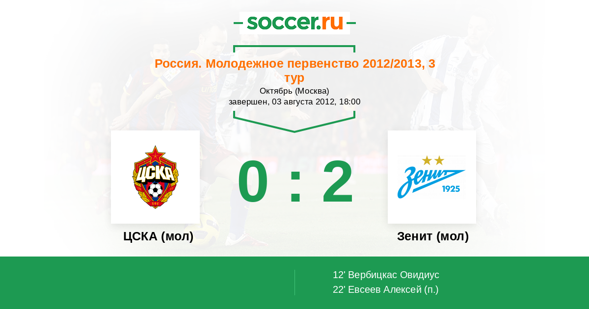 Протокол матча ЦСКА (мол) против Зенит (мол)