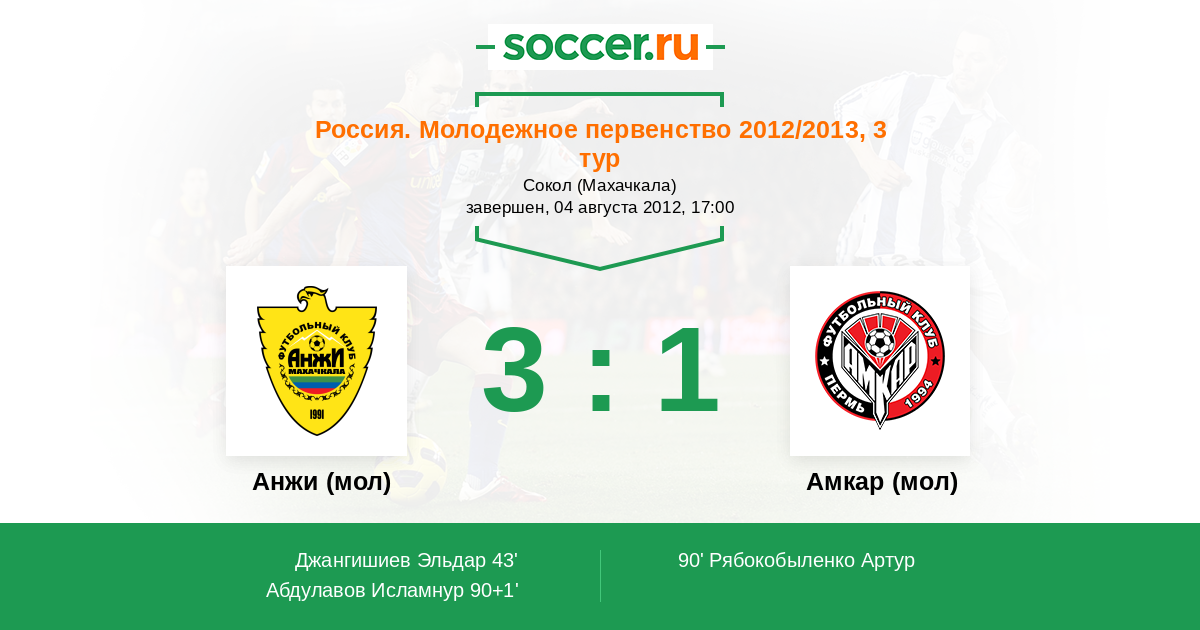 Протокол матча Анжи (мол) против Амкар (мол)