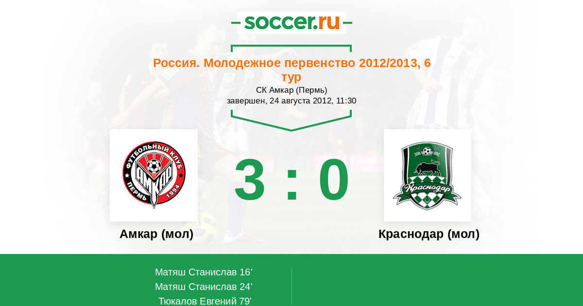 Протокол матча Амкар (мол) против Краснодар (мол)
