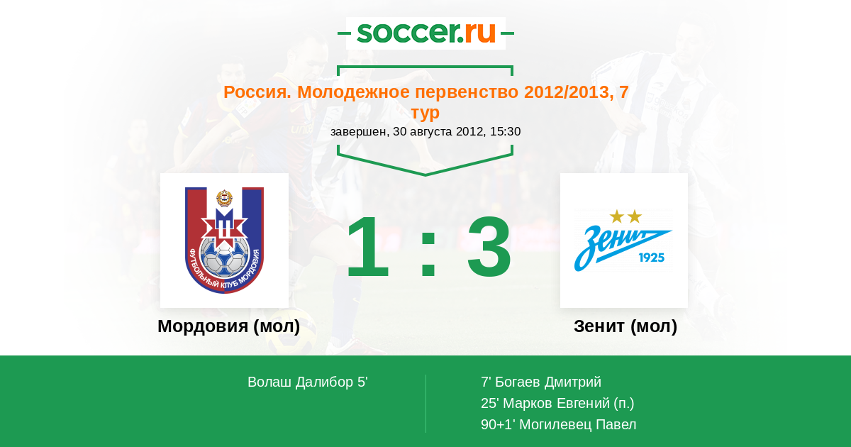 Протокол матча Мордовия (мол) против Зенит (мол)
