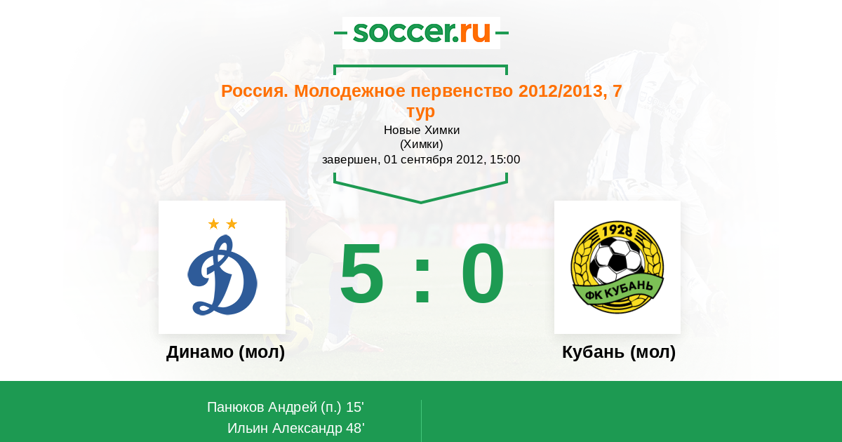 Протокол матча Динамо (мол) против Кубань (мол)