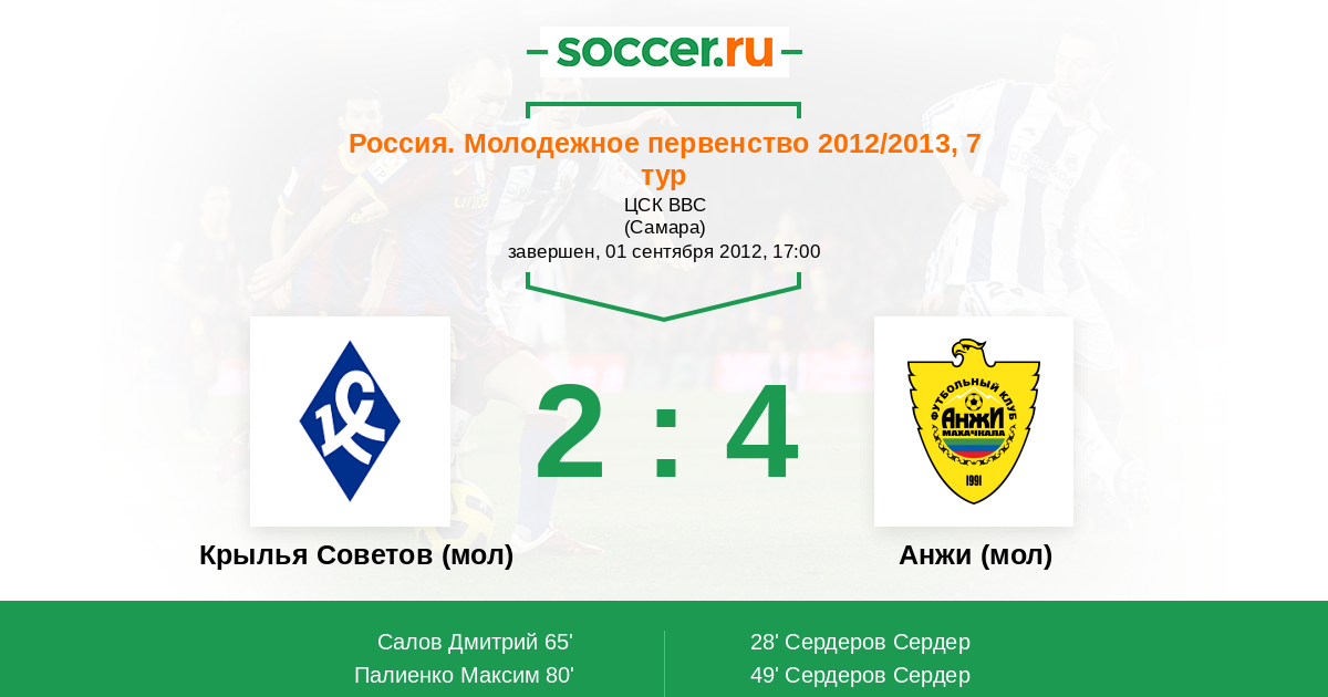 Протокол матча Крылья Советов (мол) против Анжи (мол)