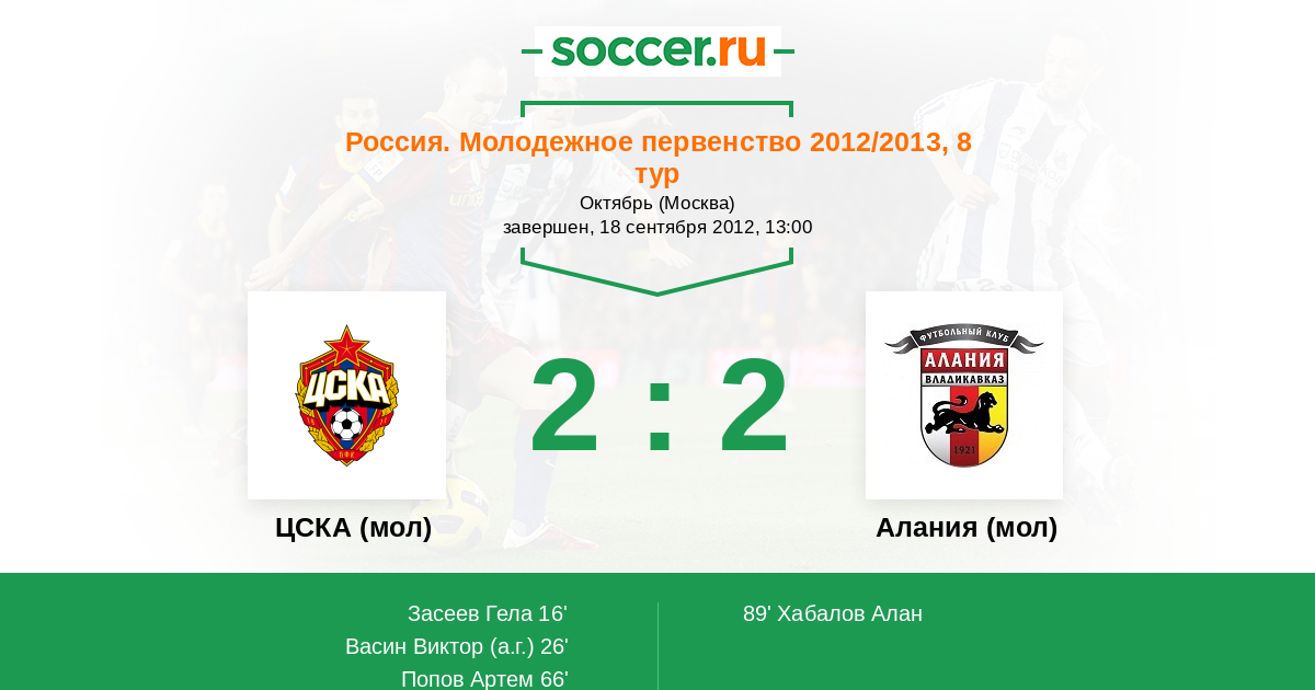 Протокол матча ЦСКА (мол) против Алания (мол)
