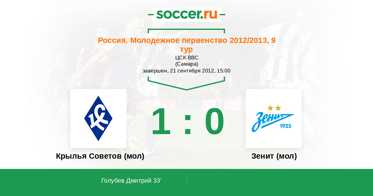 Протокол матча Крылья Советов (мол) против Зенит (мол)