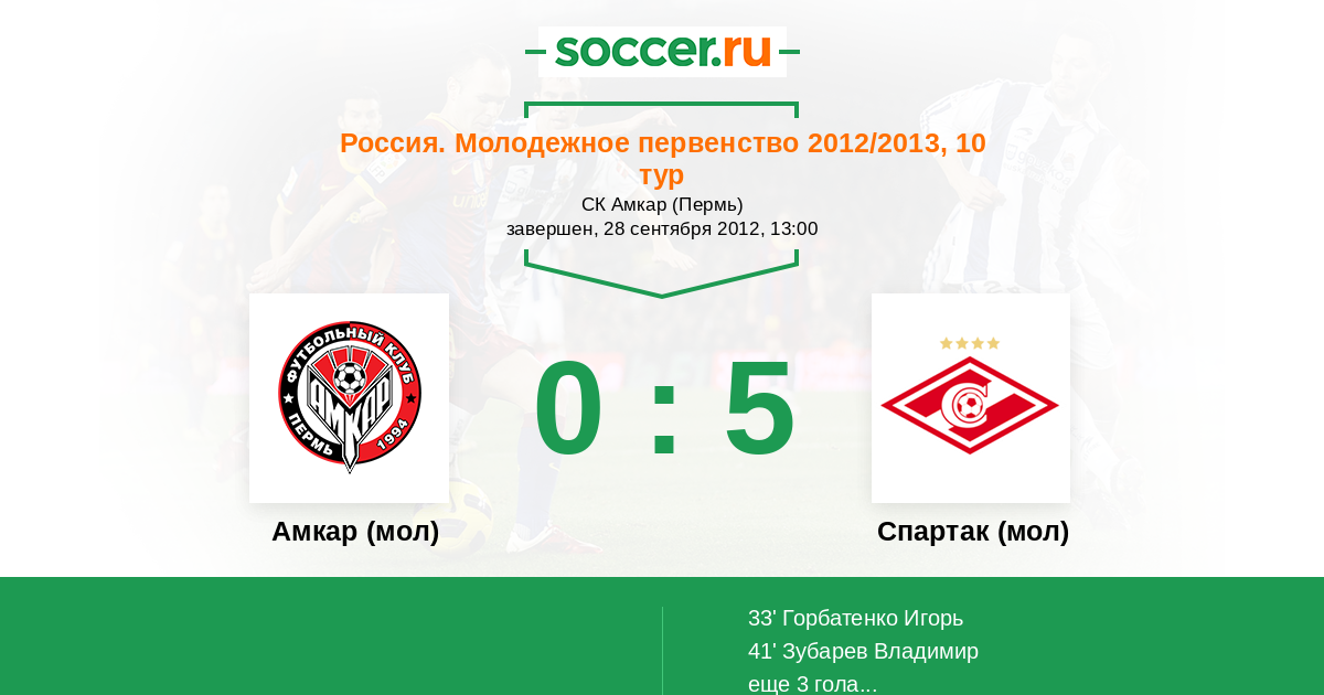 Протокол матча Амкар (мол) против Спартак (мол)
