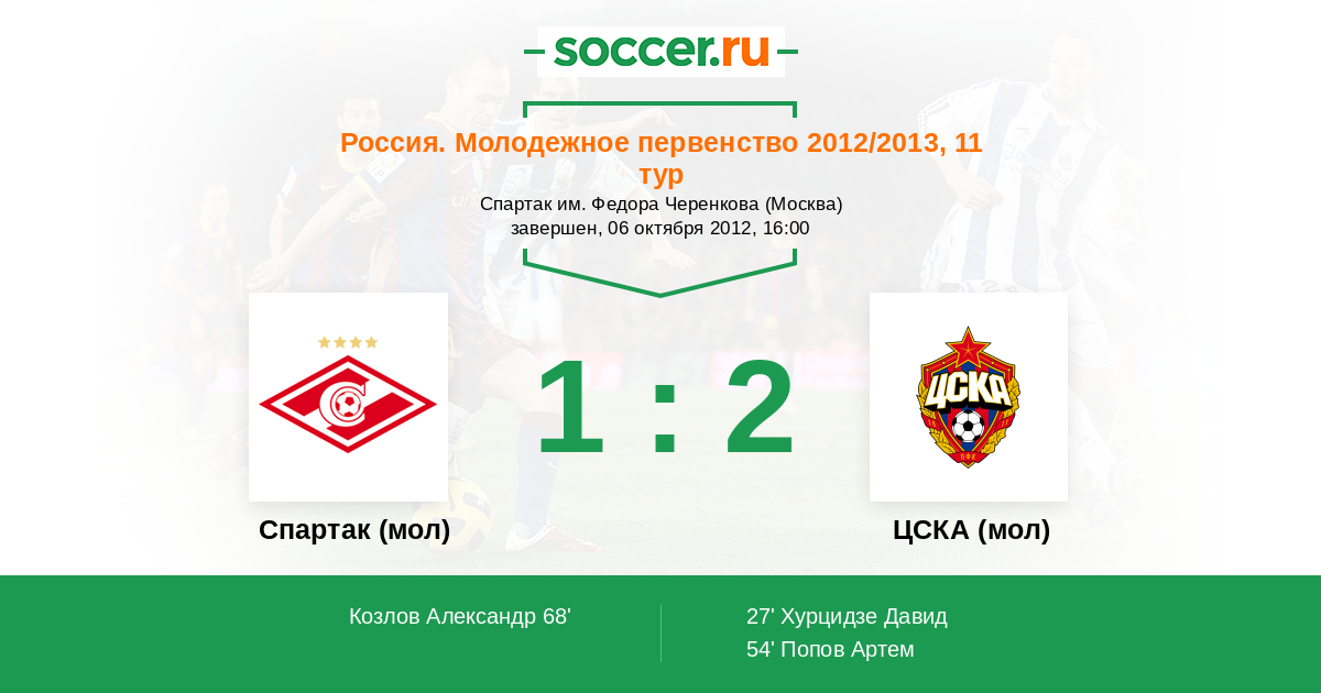 Протокол матча Спартак (мол) против ЦСКА (мол)