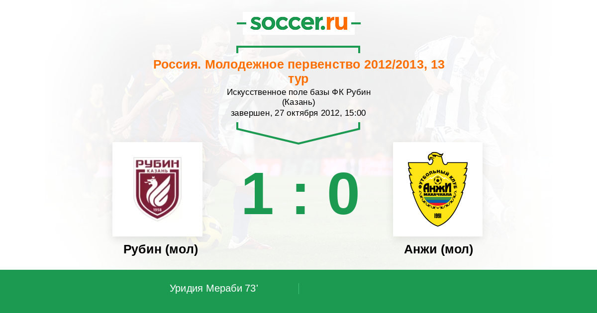 Протокол матча Рубин (мол) против Анжи (мол)