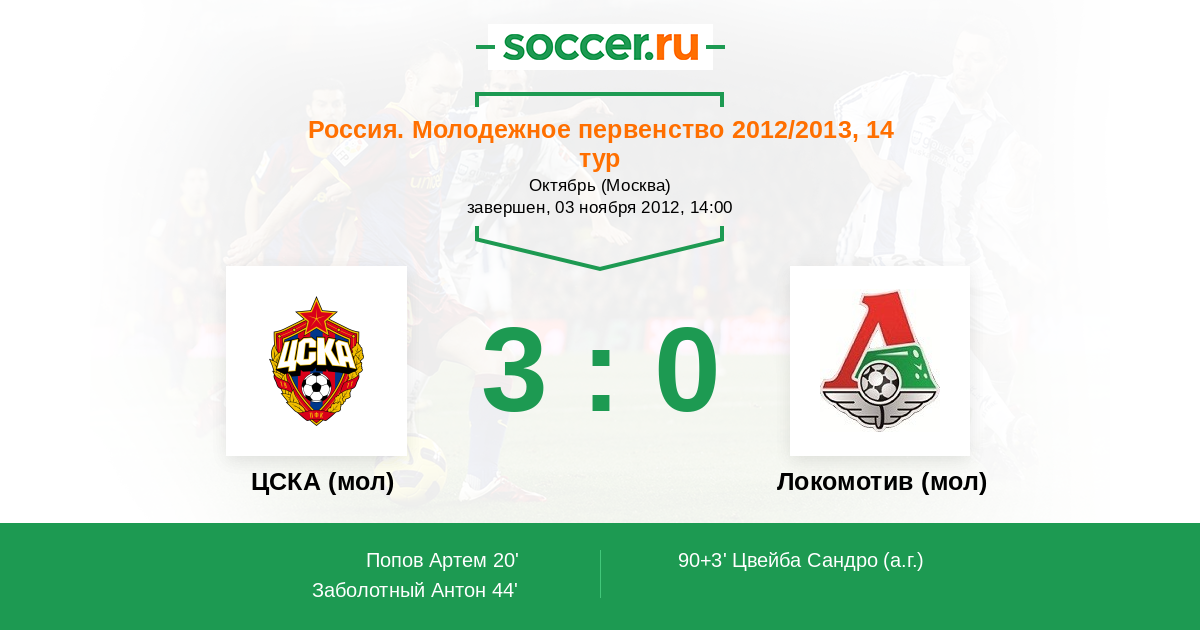 Протокол матча ЦСКА (мол) против Локомотив (мол)