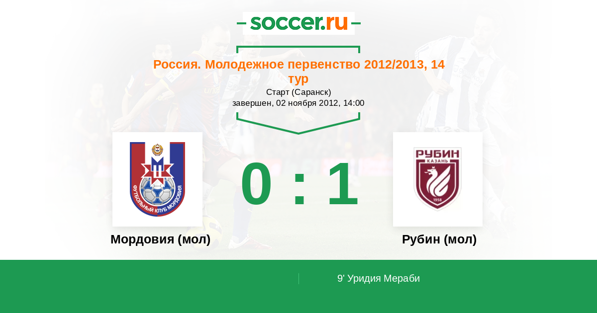 Протокол матча Мордовия (мол) против Рубин (мол)