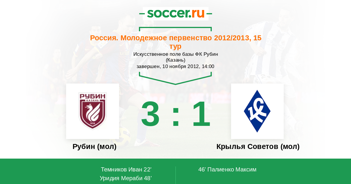 Протокол матча Рубин (мол) против Крылья Советов (мол)