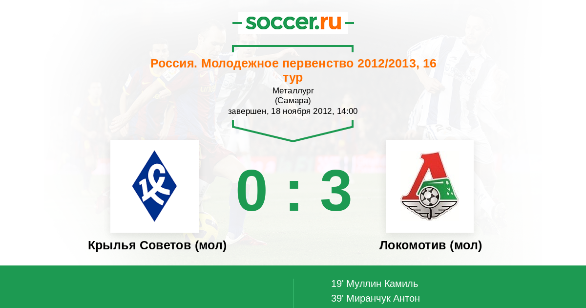 Протокол матча Крылья Советов (мол) против Локомотив (мол)