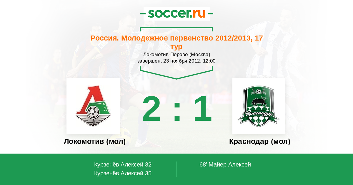 Протокол матча Локомотив (мол) против Краснодар (мол)