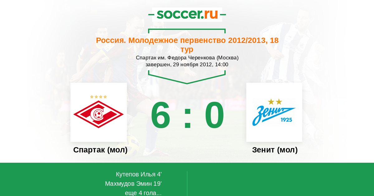 Протокол матча Спартак (мол) против Зенит (мол)