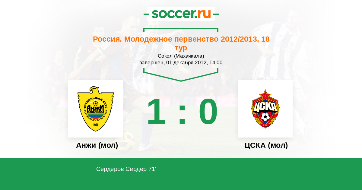 Протокол матча Анжи (мол) против ЦСКА (мол)
