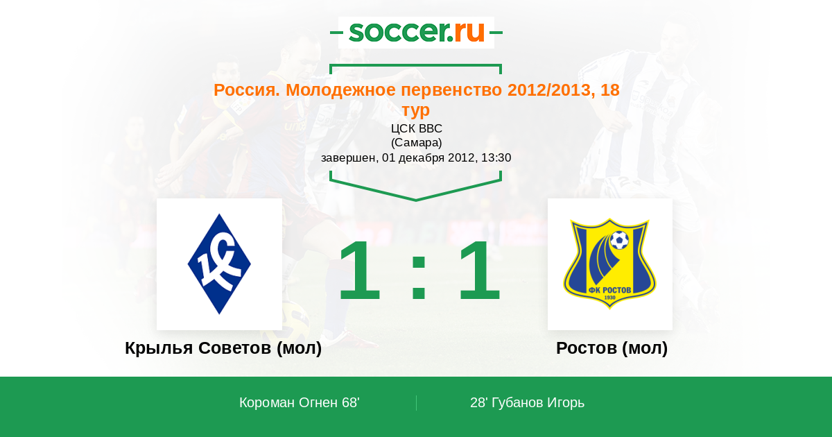 Протокол матча Крылья Советов (мол) против Ростов (мол)