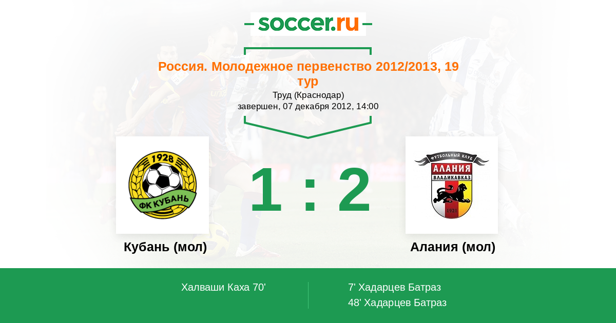 Протокол матча Кубань (мол) против Алания (мол)