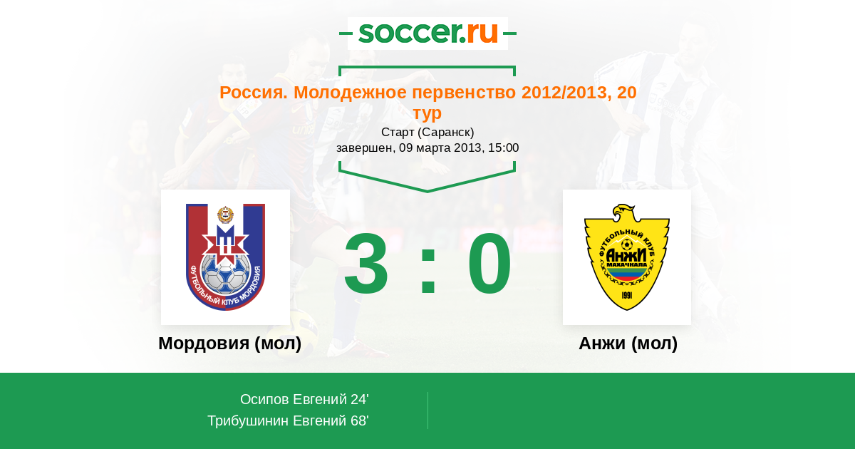 Протокол матча Мордовия (мол) против Анжи (мол)