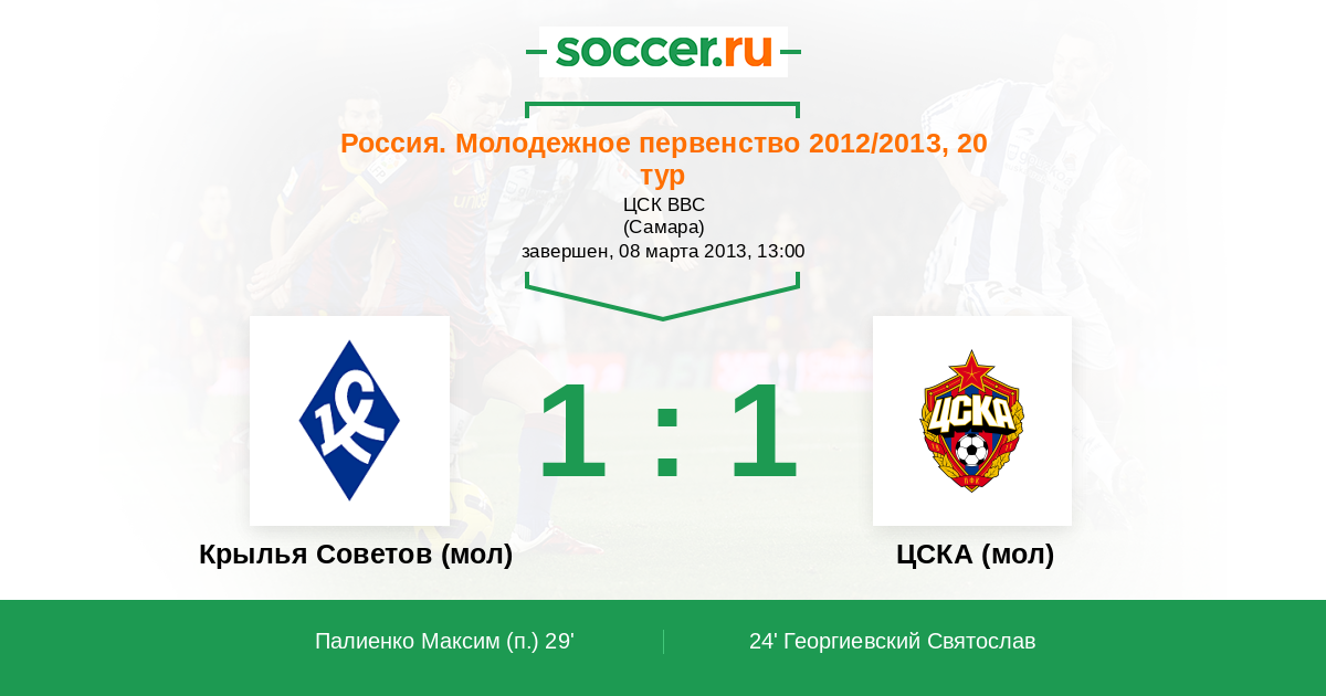 Протокол матча Крылья Советов (мол) против ЦСКА (мол)