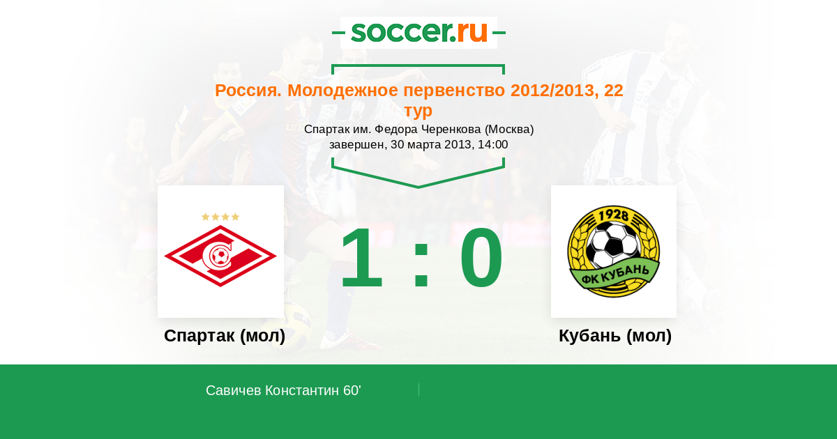 Протокол матча Спартак (мол) против Кубань (мол)