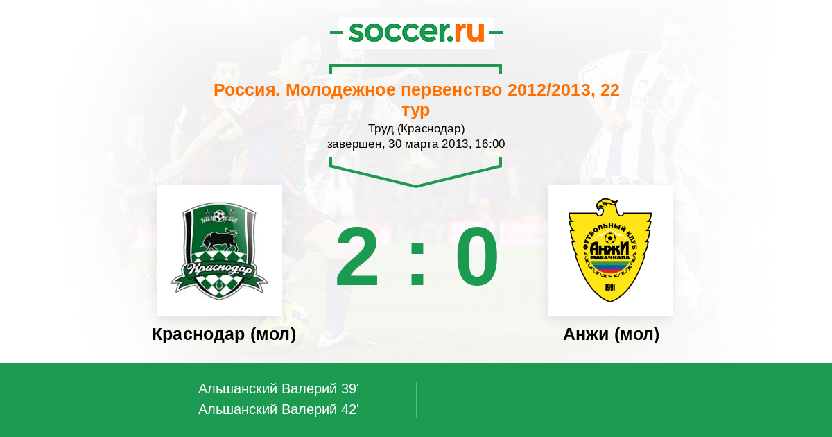 Протокол матча Краснодар (мол) против Анжи (мол)