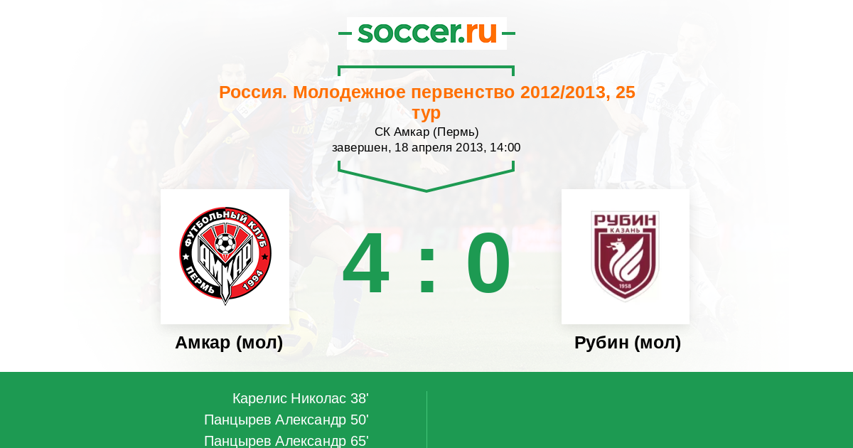 Протокол матча Амкар (мол) против Рубин (мол)
