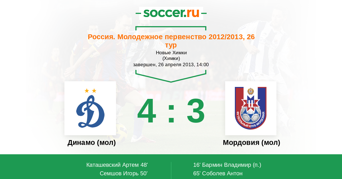 Протокол матча Динамо (мол) против Мордовия (мол)