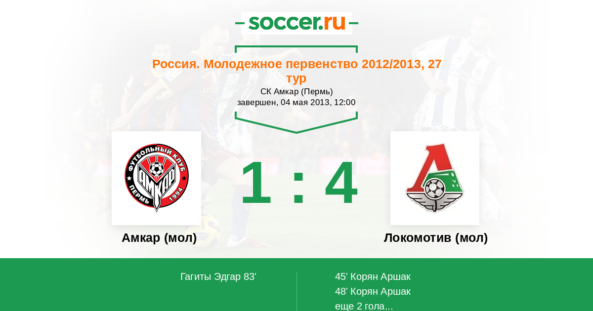 Протокол матча Амкар (мол) против Локомотив (мол)