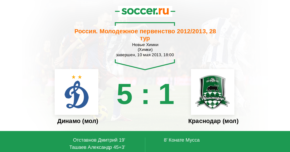 Протокол матча Динамо (мол) против Краснодар (мол)