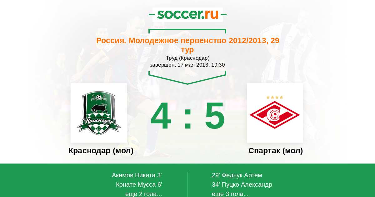 Протокол матча Краснодар (мол) против Спартак (мол)