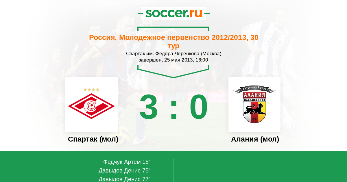 Протокол матча Спартак (мол) против Алания (мол)