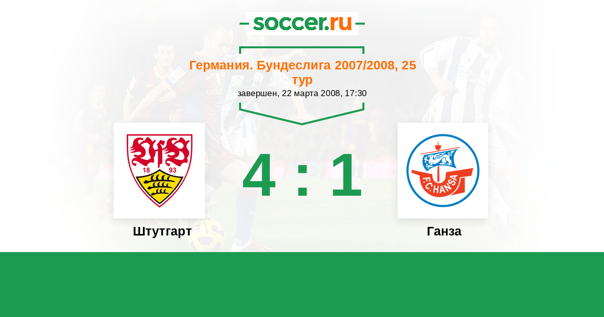 Германия. Бундеслига 29.09.2007 Ганза Логотип футбольный клуб Ганза (Росток) 2:1 Логотип футбольный клуб Штутгарт Штутгарт