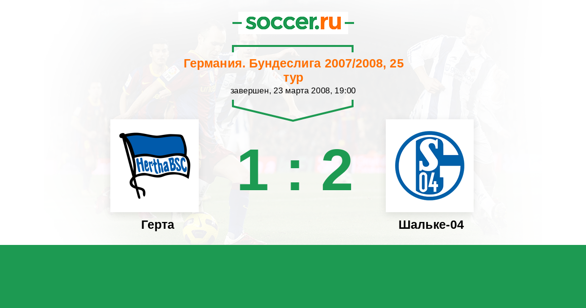 Германия. Бундеслига 28.09.2007 Шальке-04 Логотип футбольный клуб Шальке-04 (Гельзенкирхен) 1:0 Логотип футбольный клуб Герта (Берлин) Герта
