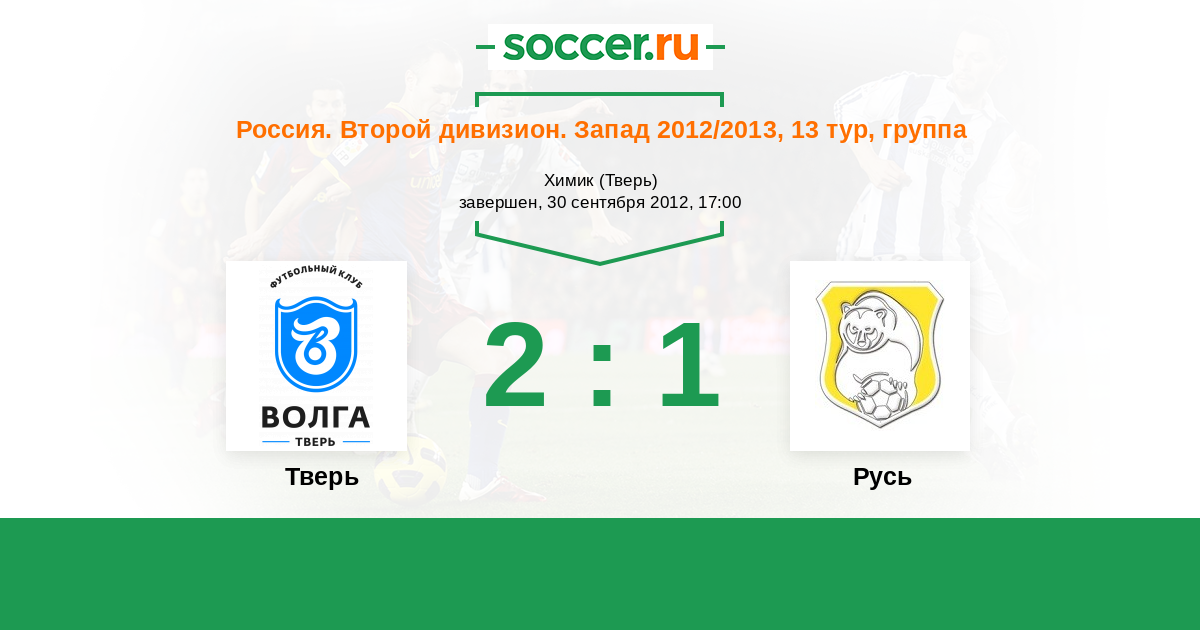 Россия. Вторая лига. Группа 2 11.10.2012 Русь Логотип футбольный клуб Русь (Санкт-Петербург) 1:0 Логотип футбольный клуб Тверь Тверь