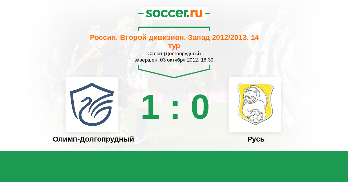 Россия. Вторая лига. Группа 2 14.10.2012 Русь Логотип футбольный клуб Русь (Санкт-Петербург) 0:2 Логотип футбольный клуб Долгопрудный Долгопрудный