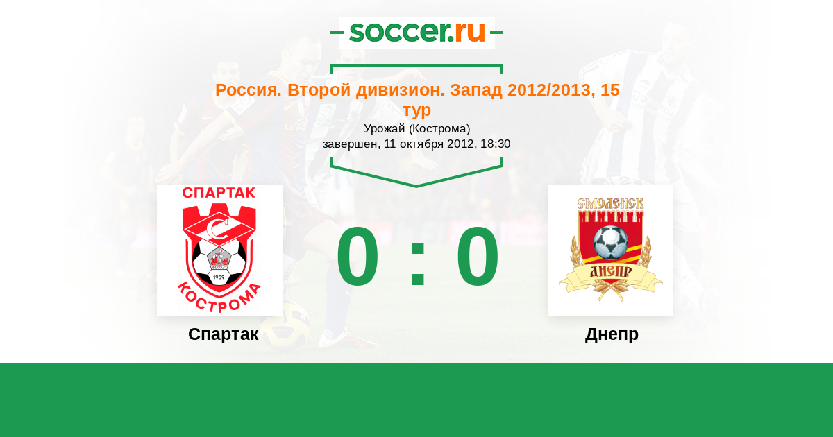 Россия. Вторая лига. Группа 2 30.09.2012 Днепр Логотип футбольный клуб Днепр (Смоленск) 0:2 Логотип футбольный клуб Спартак Кострома Спартак Кострома