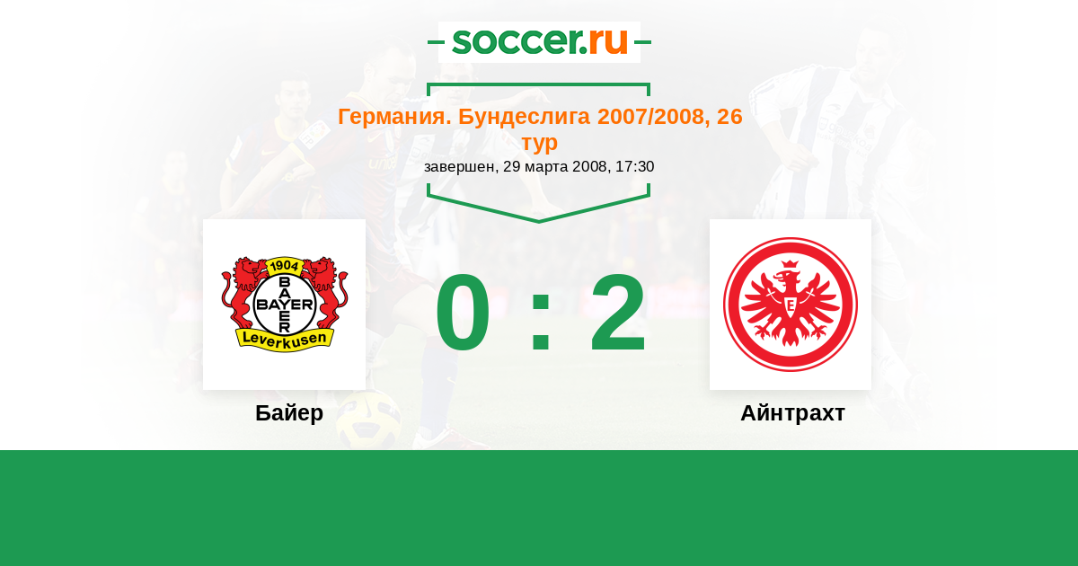 Германия. Бундеслига 18.10.2008 Айнтрахт Логотип футбольный клуб Айнтрахт (Франкфурт) 0:2 Логотип футбольный клуб Байер (Леверкузен) Байер
