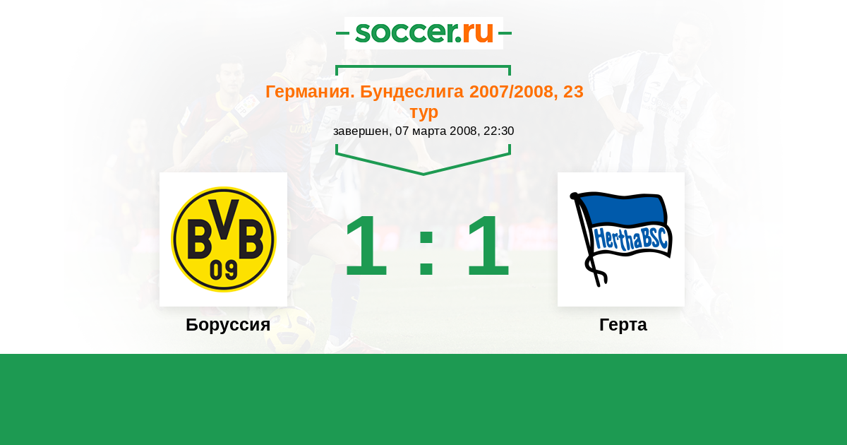 Германия. Бундеслига 26.10.2008 Боруссия Логотип футбольный клуб Боруссия (Дортмунд) 1:1 Логотип футбольный клуб Герта (Берлин) Герта
