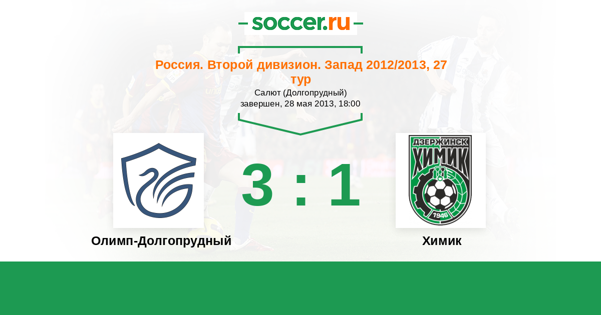 Россия. Вторая лига. Группа 2 23.07.2012 Химик Логотип футбольный клуб Химик (Дзержинск) 2:3 Логотип футбольный клуб Долгопрудный Долгопрудный