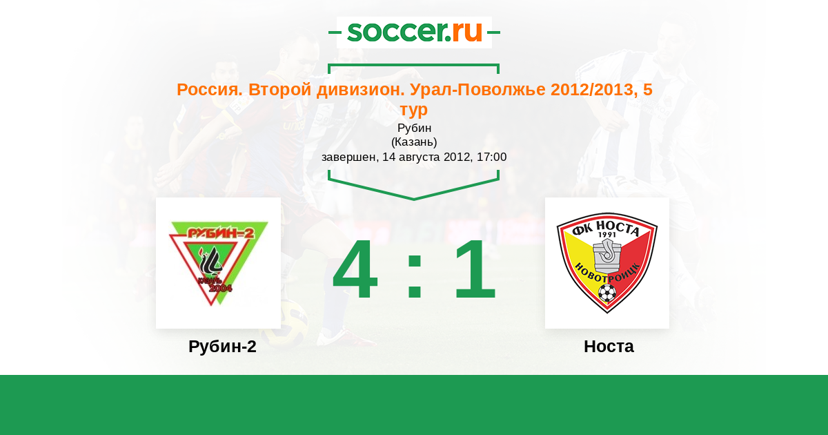 Россия. Вторая лига. Группа 4 07.08.2014 Рубин-2 Логотип футбольный клуб Рубин-2 (Казань) 2:0 Логотип футбольный клуб Носта (Новотроицк) Носта