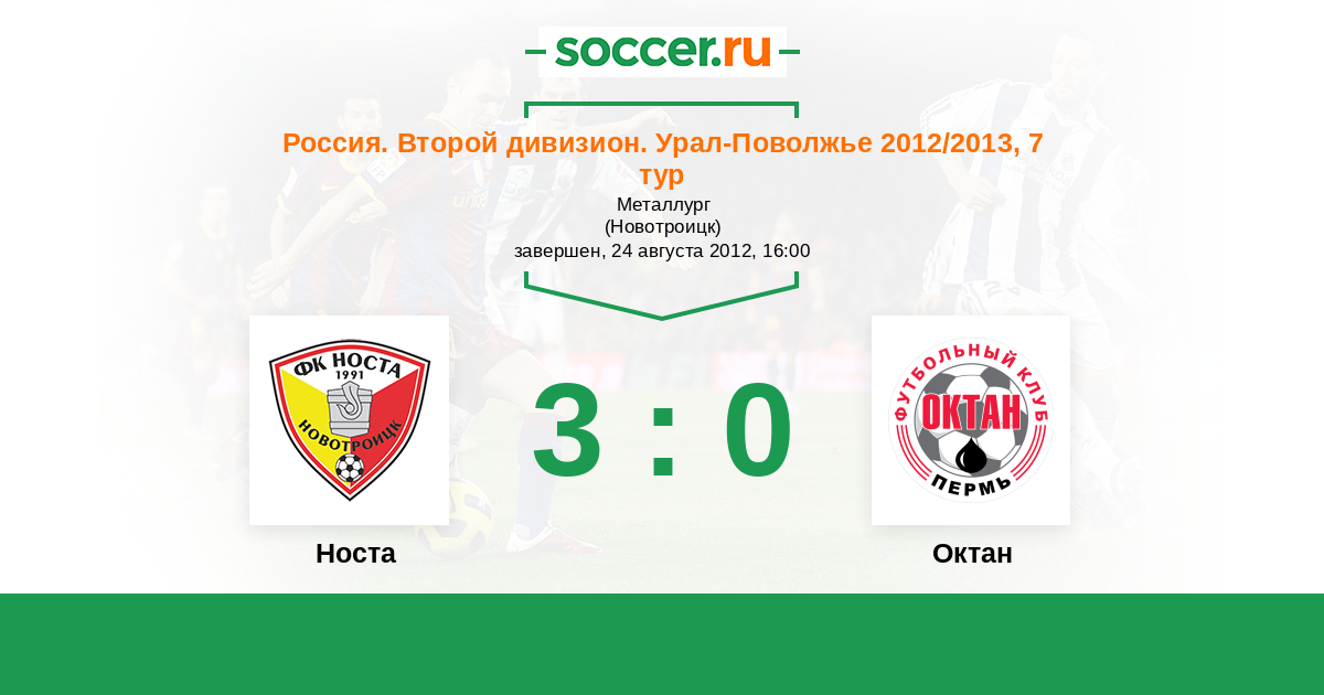 Россия. Вторая лига. Группа 4 26.07.2013 Октан Логотип футбольный клуб Октан (Пермь) 1:1 Логотип футбольный клуб Носта (Новотроицк) Носта