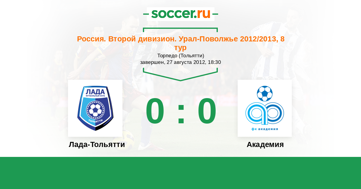 Россия. Вторая лига. Группа 4 30.04.2013 Академия Логотип футбольный клуб Академия (Тольятти) 0:3   Лада-Тольятти