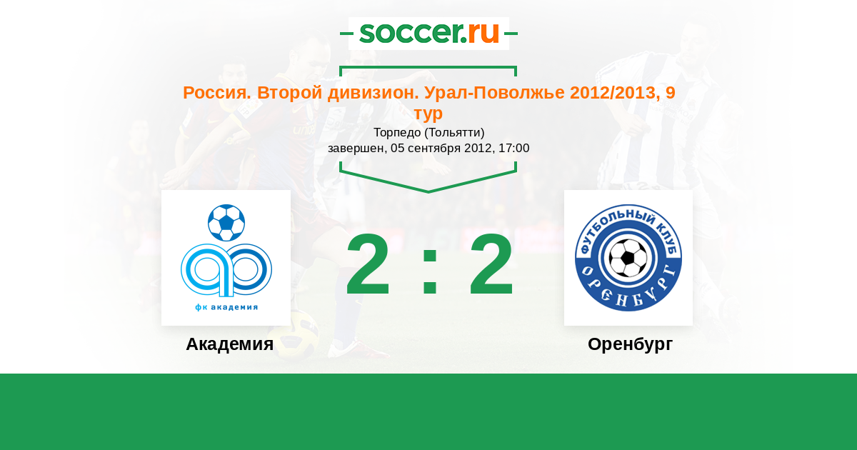 Россия. Вторая лига. Группа 4 06.05.2013 Газовик Логотип футбольный клуб Газовик (Оренбург) 3:0 Логотип футбольный клуб Академия (Тольятти) Академия