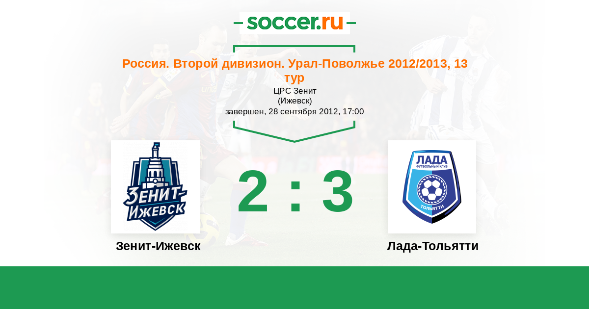 Россия. Вторая лига. Группа 4 09.09.2013 Зенит-Ижевск Логотип футбольный клуб Зенит-Ижевск 3:0 Логотип футбольный клуб Лада-Тольятти Лада-Тольятти