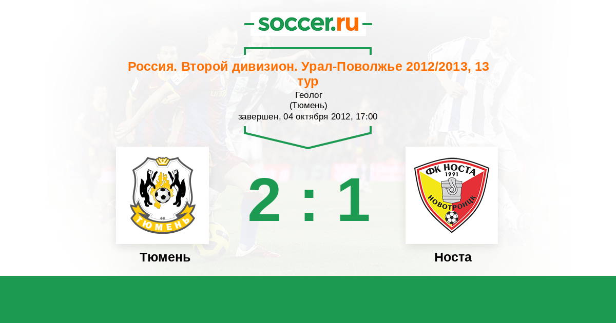 Россия. Вторая лига. Группа 4 09.09.2013 Носта Логотип футбольный клуб Носта (Новотроицк) 1:1 Логотип футбольный клуб Тюмень Тюмень