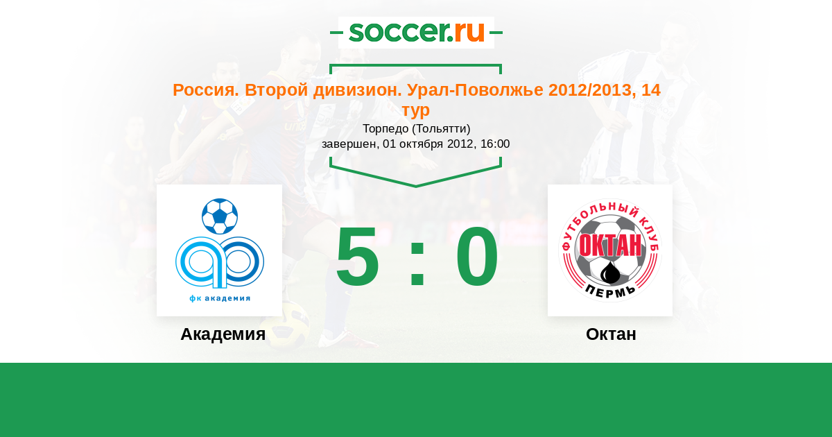 Россия. Вторая лига. Группа 4 05.10.2011 Академия Логотип футбольный клуб Академия (Тольятти) 1:0 Логотип футбольный клуб Октан (Пермь) Октан