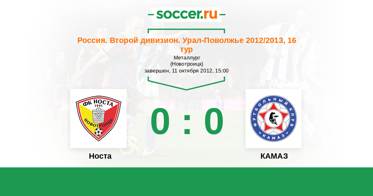 Россия. Вторая лига. Группа 4 05.06.2013 КАМАЗ Логотип футбольный клуб КАМАЗ (Набережные Челны) 2:3 Логотип футбольный клуб Носта (Новотроицк) Носта