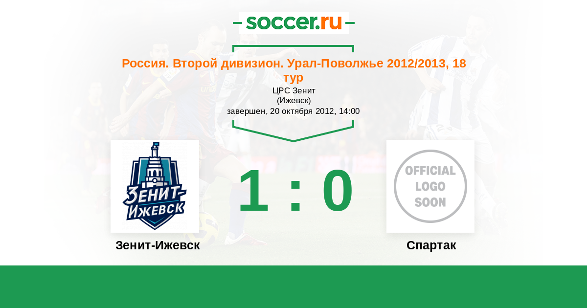 Россия. Вторая лига. Группа 4 10.10.2013 Спартак Логотип футбольный клуб Спартак (Йошкар-Ола) 1:1 Логотип футбольный клуб Зенит-Ижевск Зенит-Ижевск