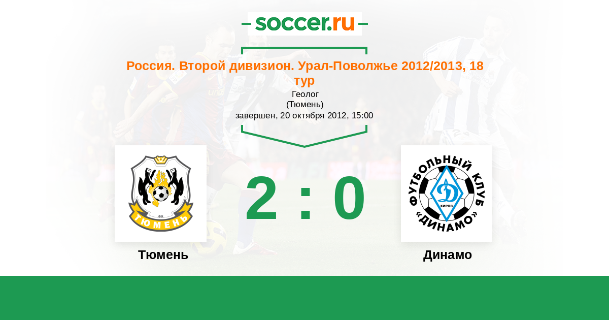Россия. Вторая лига. Группа 4 10.10.2013 Тюмень Логотип футбольный клуб Тюмень 1:0 Логотип футбольный клуб Динамо Киров Динамо Киров