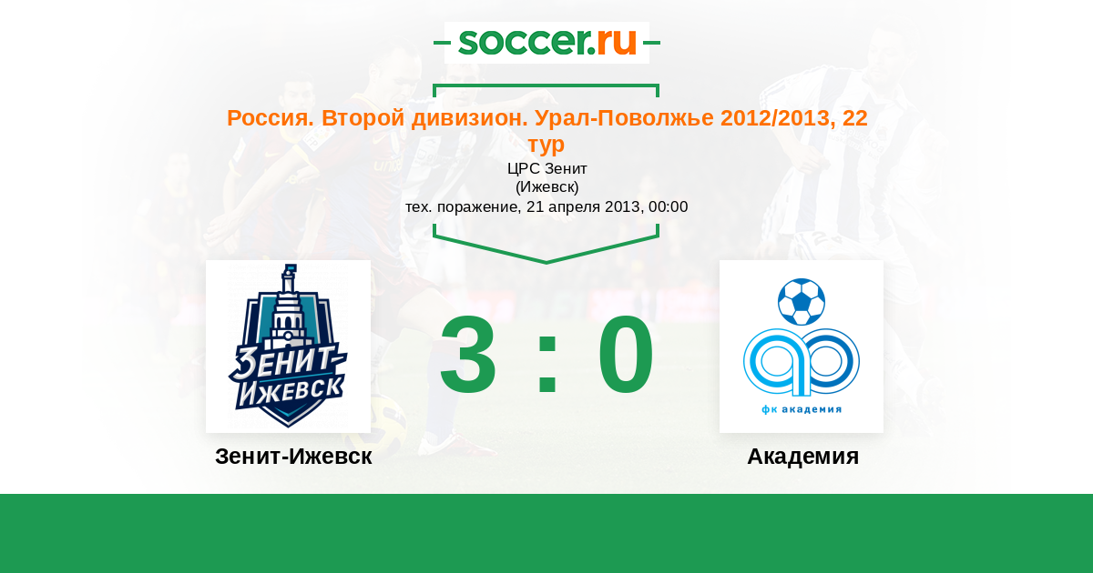 Россия. Вторая лига. Группа 4 21.04.2013 Зенит-Ижевск Логотип футбольный клуб Зенит-Ижевск 3:0 Логотип футбольный клуб Академия (Тольятти) Академия
