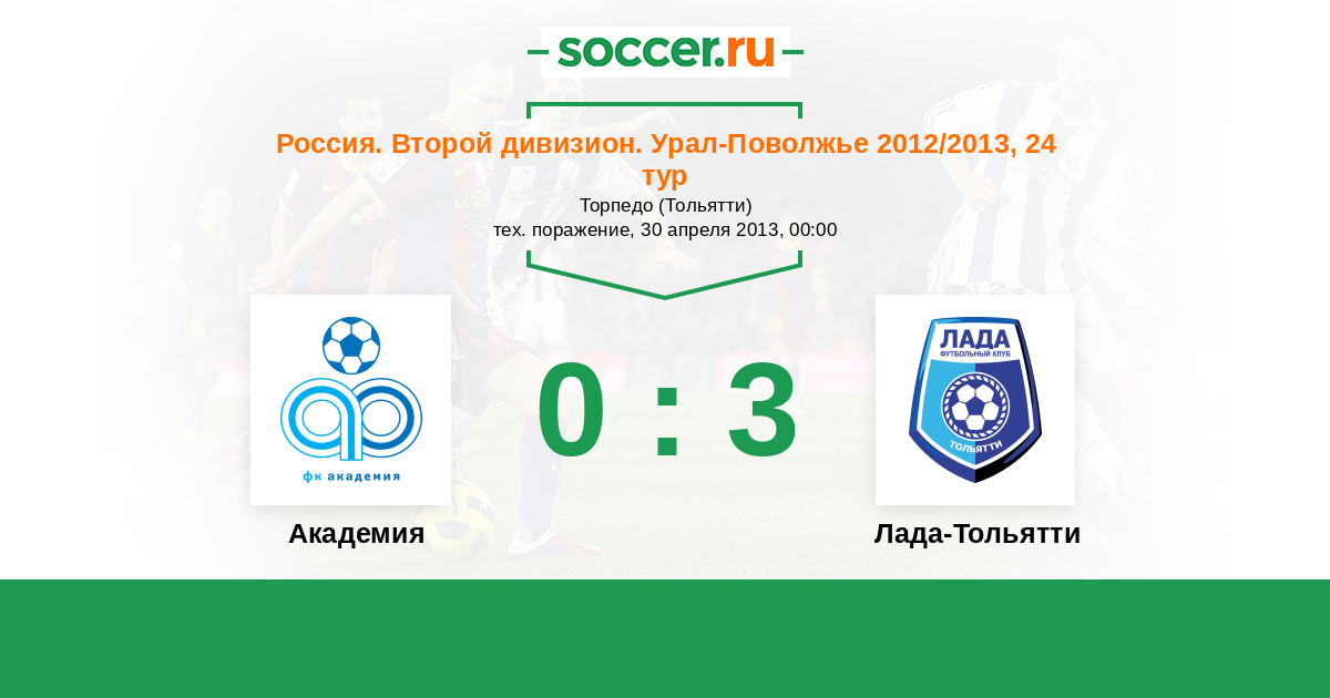Россия. Вторая лига. Группа 4 27.08.2012 Лада-Тольятти Логотип футбольный клуб Лада-Тольятти 0:0 Логотип футбольный клуб Академия (Тольятти) Академия